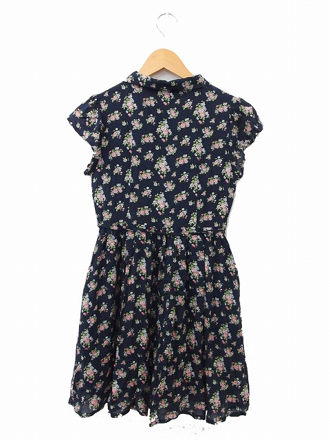 ダズリン Dazzlin ワンピース ミニ 半袖 フレア リボン 丸襟 綿 コットン 花柄 S ネイビー 紺 Kt17 レディース ベクトル 中古 の通販はwowma ブランド古着のベクトル
